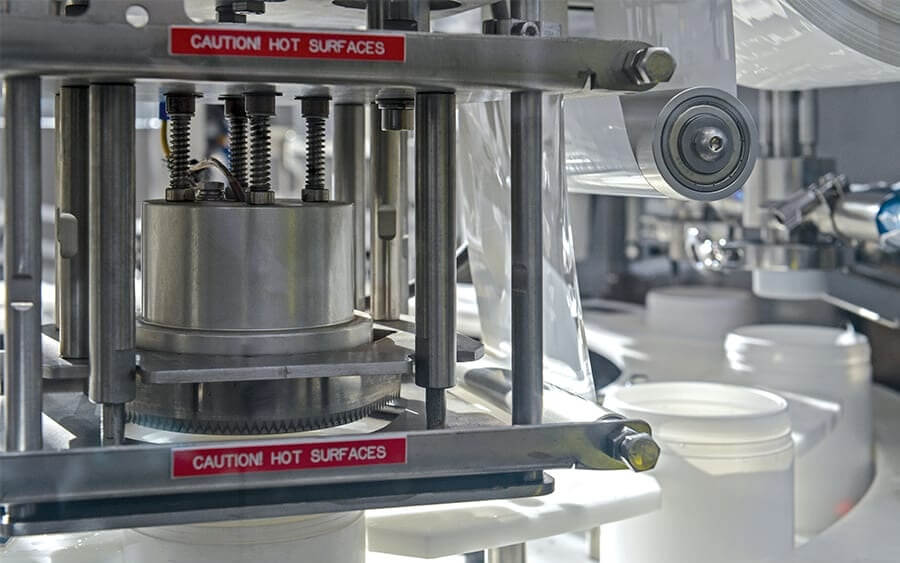 - Induction Heat sealing machine: This machine uses heat to melt and seal the packaging material together without touching the packaging material.